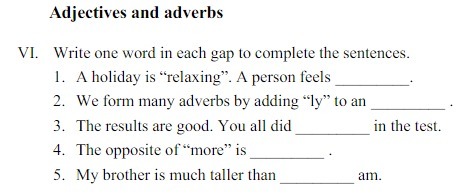 1 good 2 adjective 3 well 4 less OR fewer 5 I ...