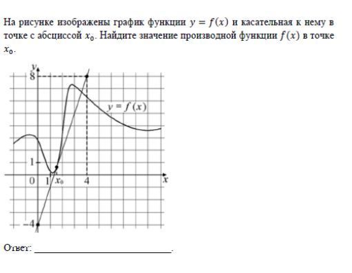 .Значение производной в точке касания равно угловому коэффициенту касательной, а угловой коэффициент равен тангенсу угла наклона касательной к оси абсцисс.