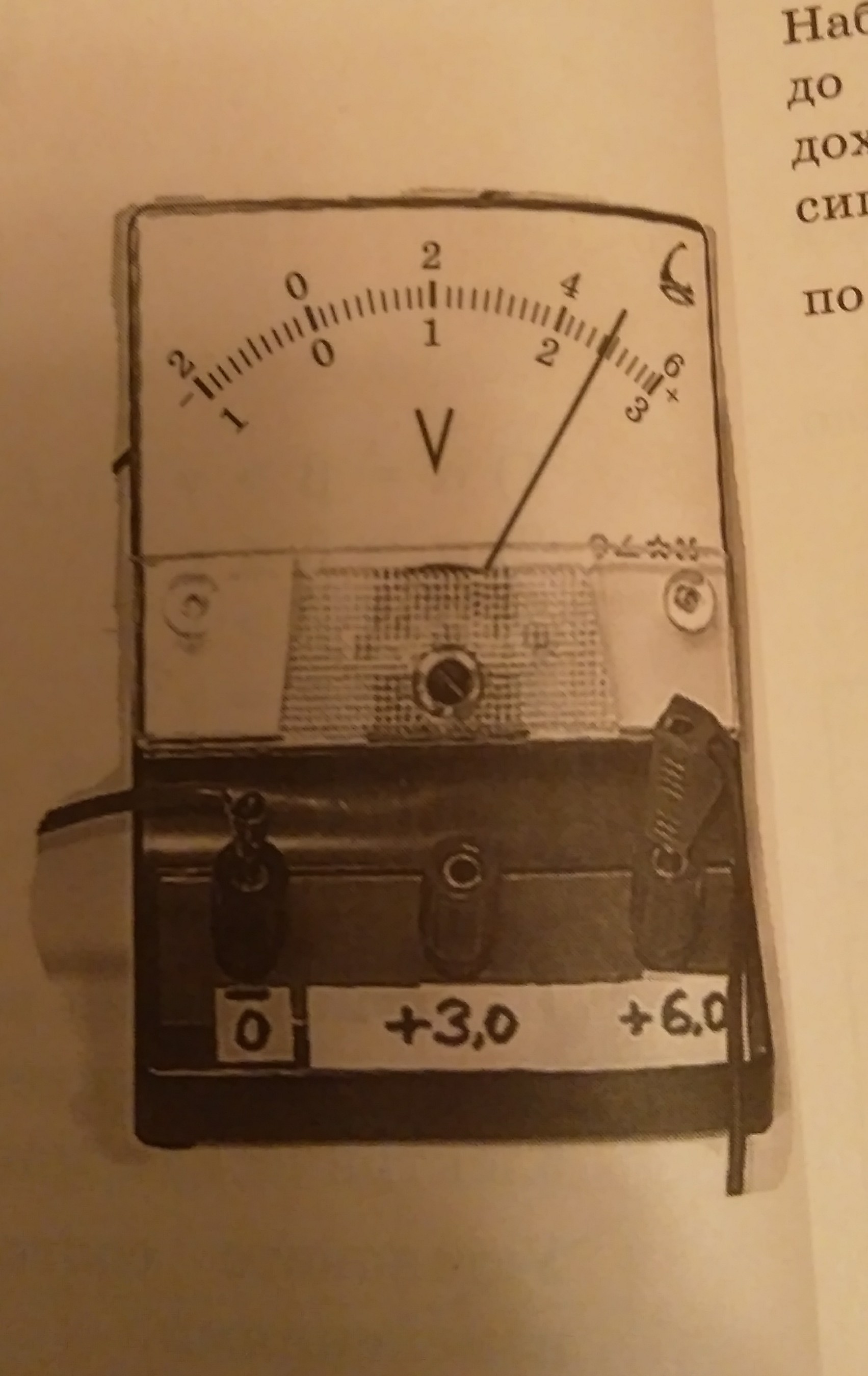 У вольтметра две шкалы (см. на рисунке). По какой шкале смотреть его показания?