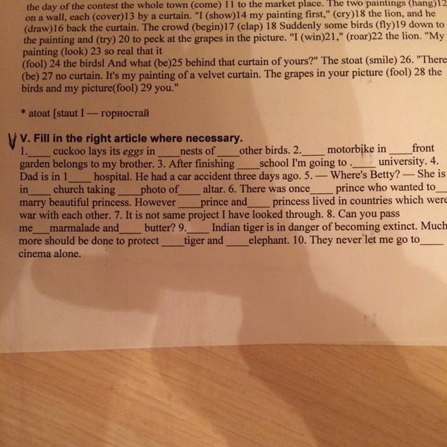 1 the; the; --- 2 the; the 3 --;-- 4 – 5 the; a; the 6 a prince; a princess; the; the 7 the same 8 the; the 9 the; the; the 10 the