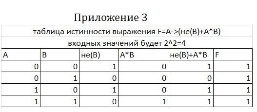 3) построим для этого выражения таблицу истинности (см. приложение 1)