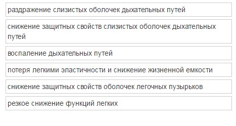 Установите последовательность развития симптомов заболевания легких у курильщиков:
