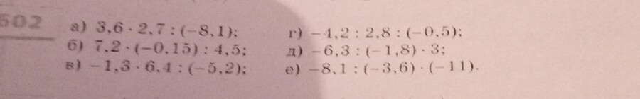 б) 7,2 * ( - 0,15) : 4,5 = - 1,08 : 4,5 = - 0,24;