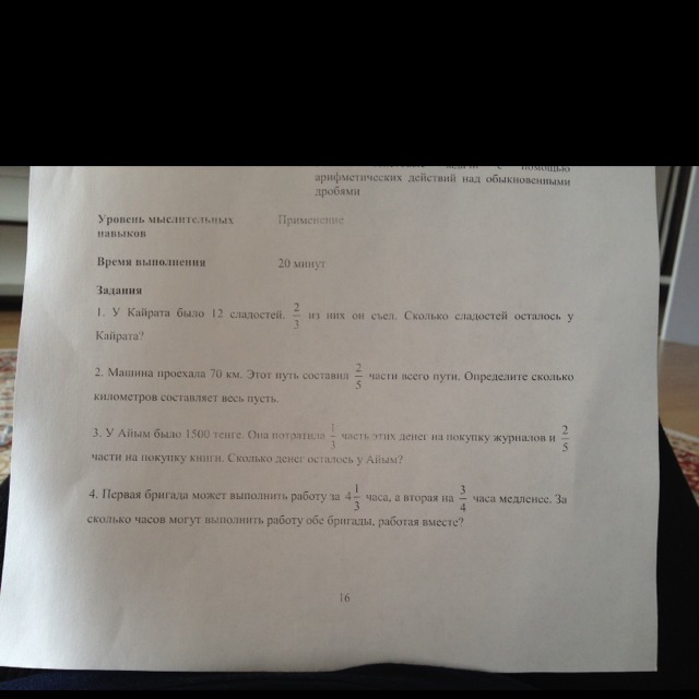 1) 1/3 + 2/5 =5/15 + 6/15 = 11/15 своих денег Айым потратила на покупки.