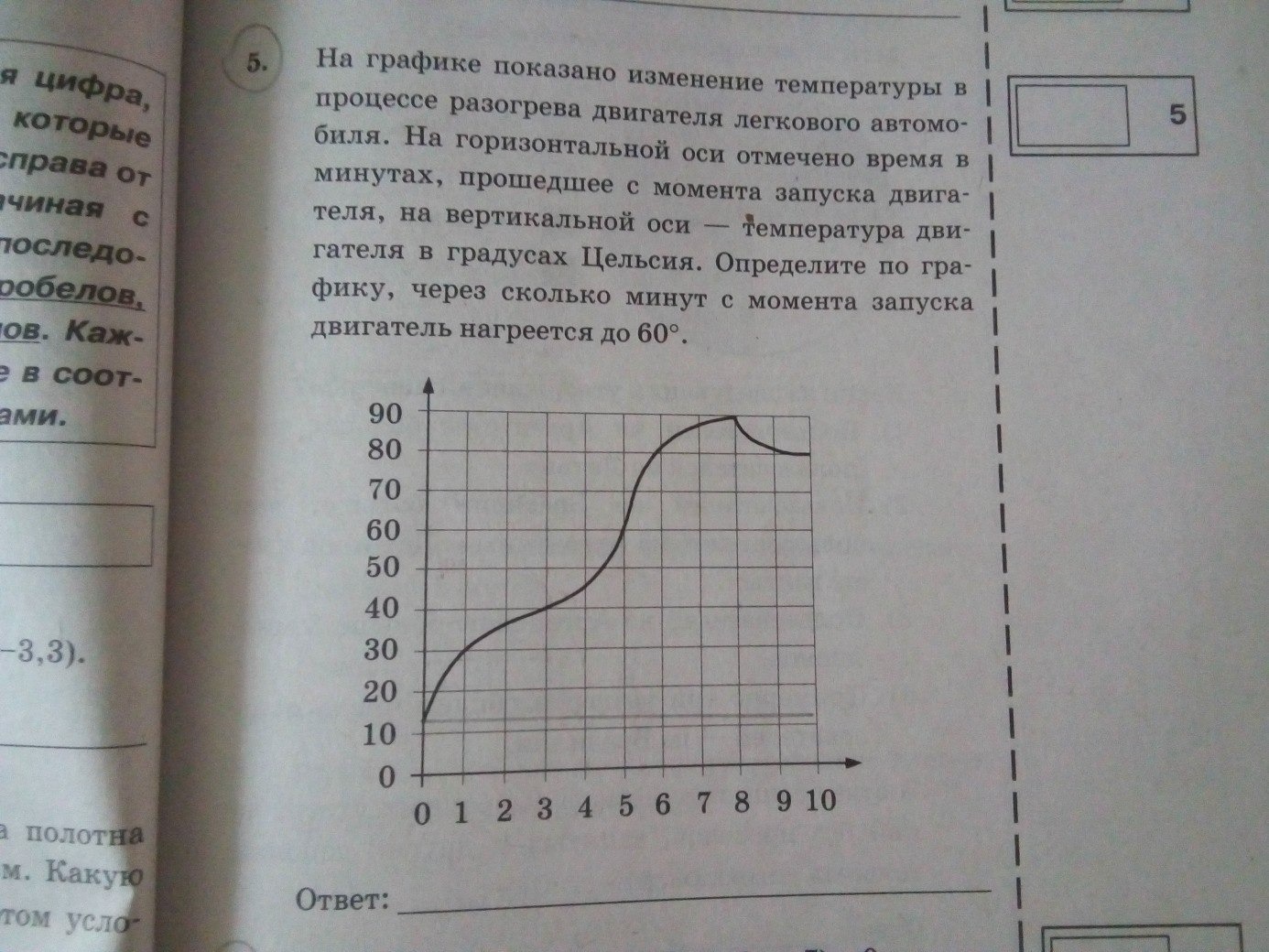 5 мин. Потому что если у это температура х это время в минутах, то координаты (5;60). Значит х равно 5, то 5 мин