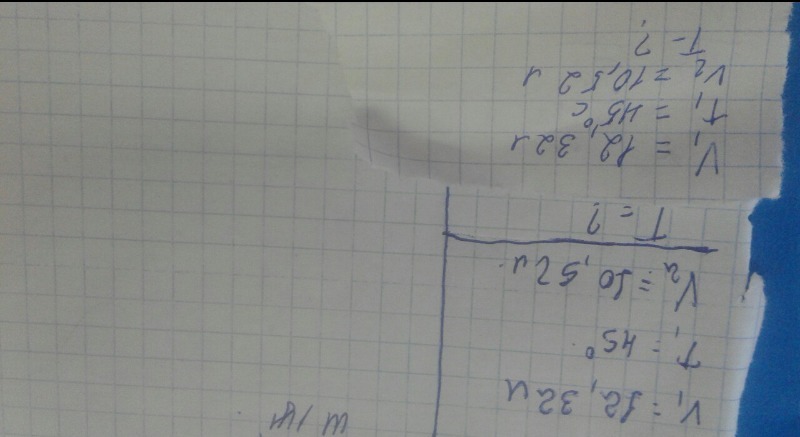 T2=T1*V2/V1=318*10.52/12.32≈272 K (-1°C)
