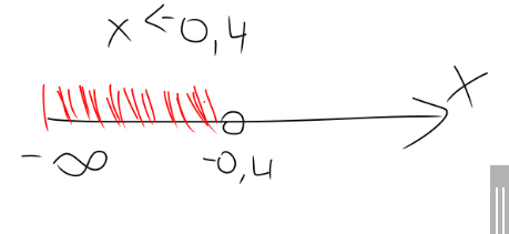 Ответ в неравенствах всегда записывается каким то промежутком. Здесь он: (-∞; -0,4)