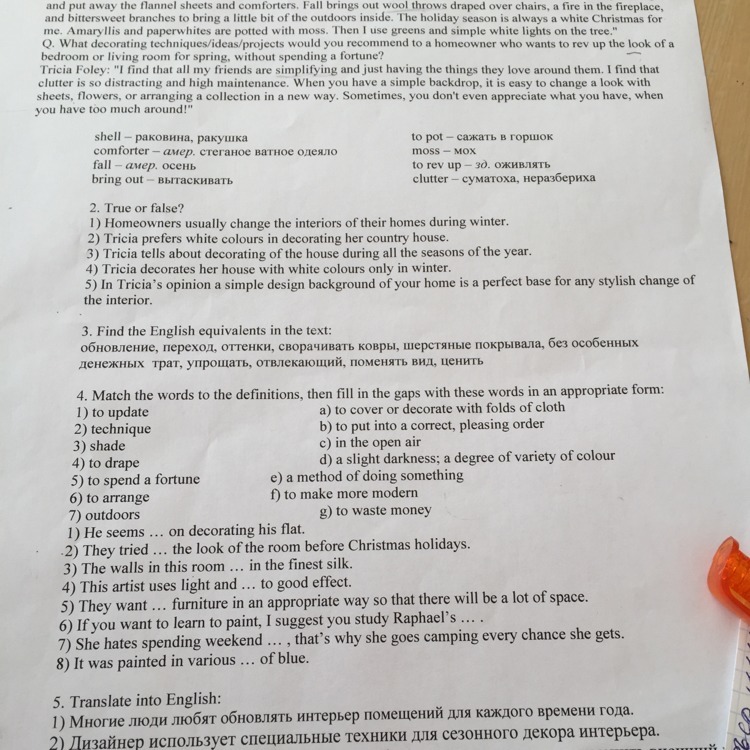 1) to have spent a fortune 2) to update 3) are draped 4) shade 5) to arrange 6) technique 7) indoors 8) shades