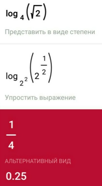 Чтобы решить это задание, надо подумать в какой степени число 4 будет равно √2. Если внимательно подумать, то можно заметить, что ответ- это