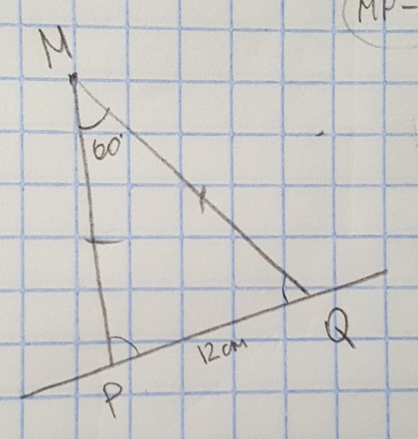 по условию угол PMQ=60гр., PM=MQ значит тр.MPQ равносторонний, значит MP=PQ=QM=12см, следовательно MP=12см.
