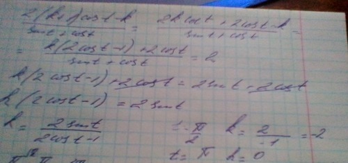 (2 (k+1)cos t-k)/sin t+cos t=2
