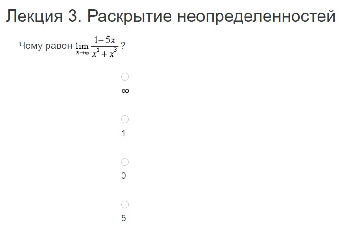 Раскрытие неопределённостей. Чему равен предел в примере?