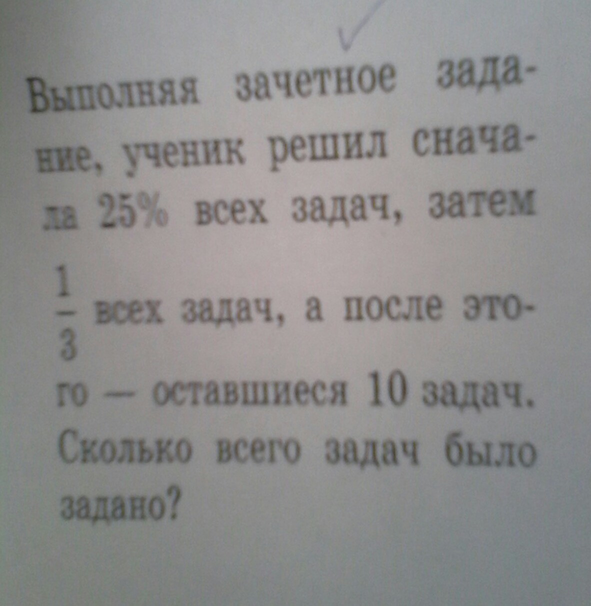 Пусть всего задач было х. Ученик выполнил сначала 25% всех задач, то есть 25% от х, то есть