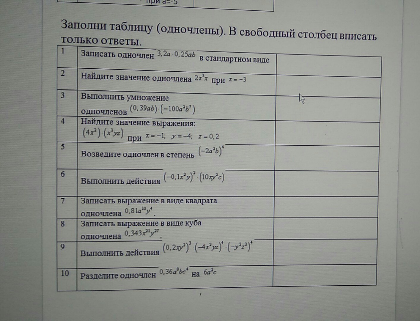 помогите табличку заполнить по математике!