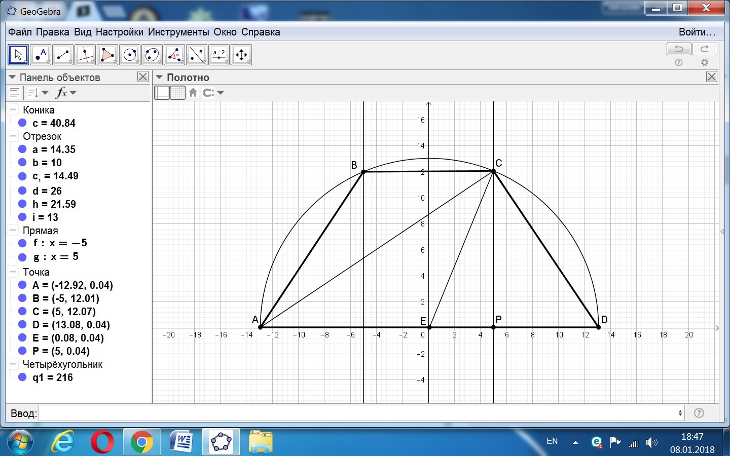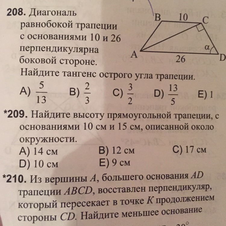 Отрезок РД равен половине разности оснований: РД = (26 + 10)/2 = 8.