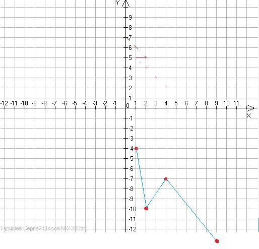 все значения "у" отличаются от первой таблицы на 1 (только теперь меньше)