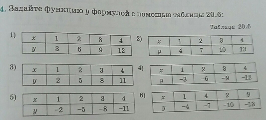 все значения "у" отличаются от четвертой таблицы на 1 (больше)