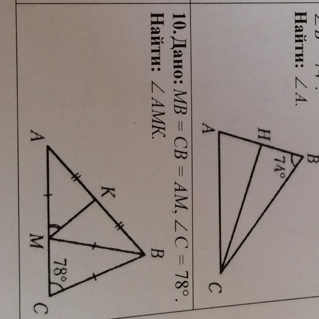 3)угол АМВ=угол АМК+угол КМВ. Значит, угол АМК=102/2=51 градусу(против равных сторон лежат равные углы).