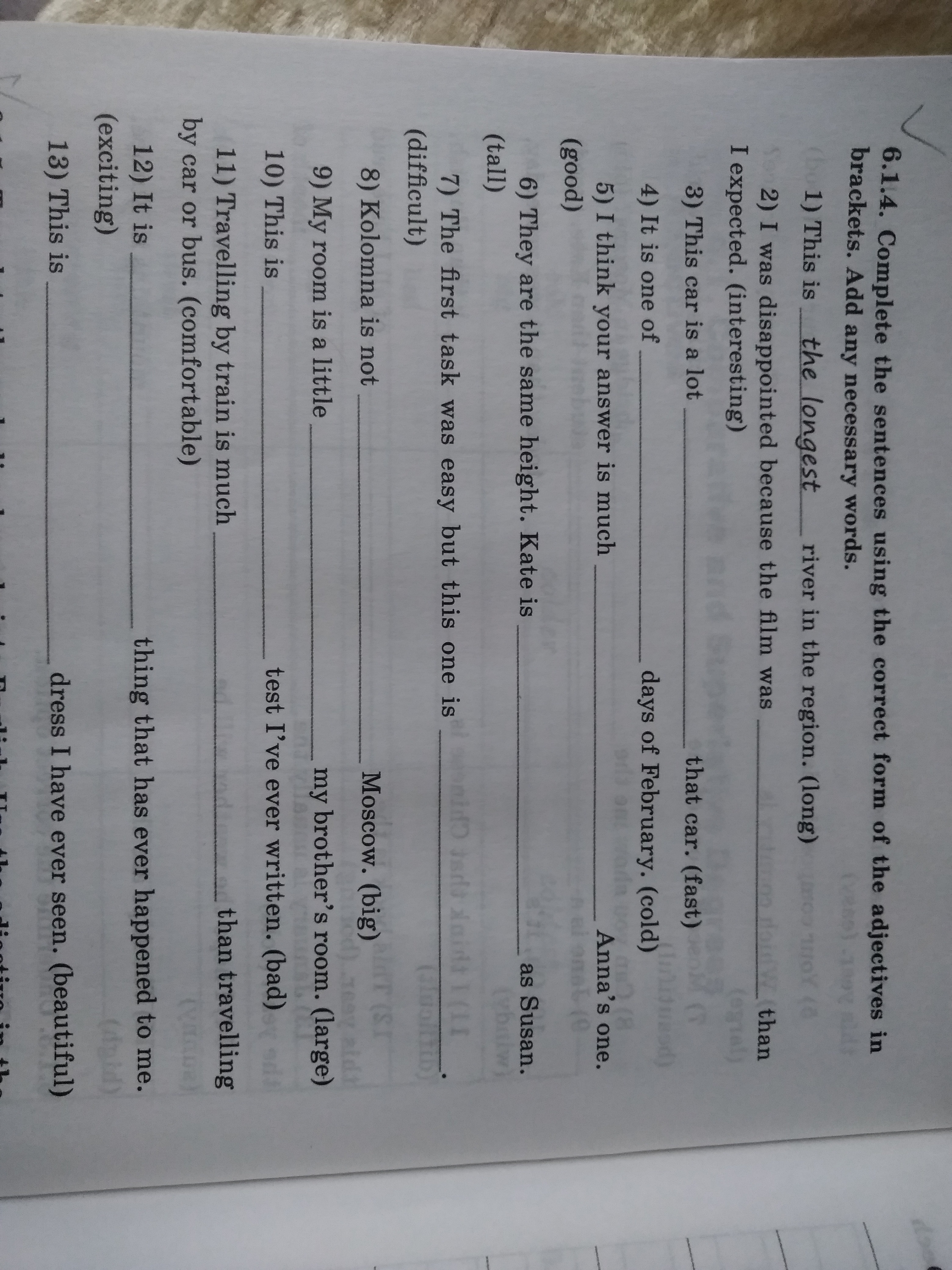 Complete the sentences using the correct form of the adjective in brackets. Add any necessary words.