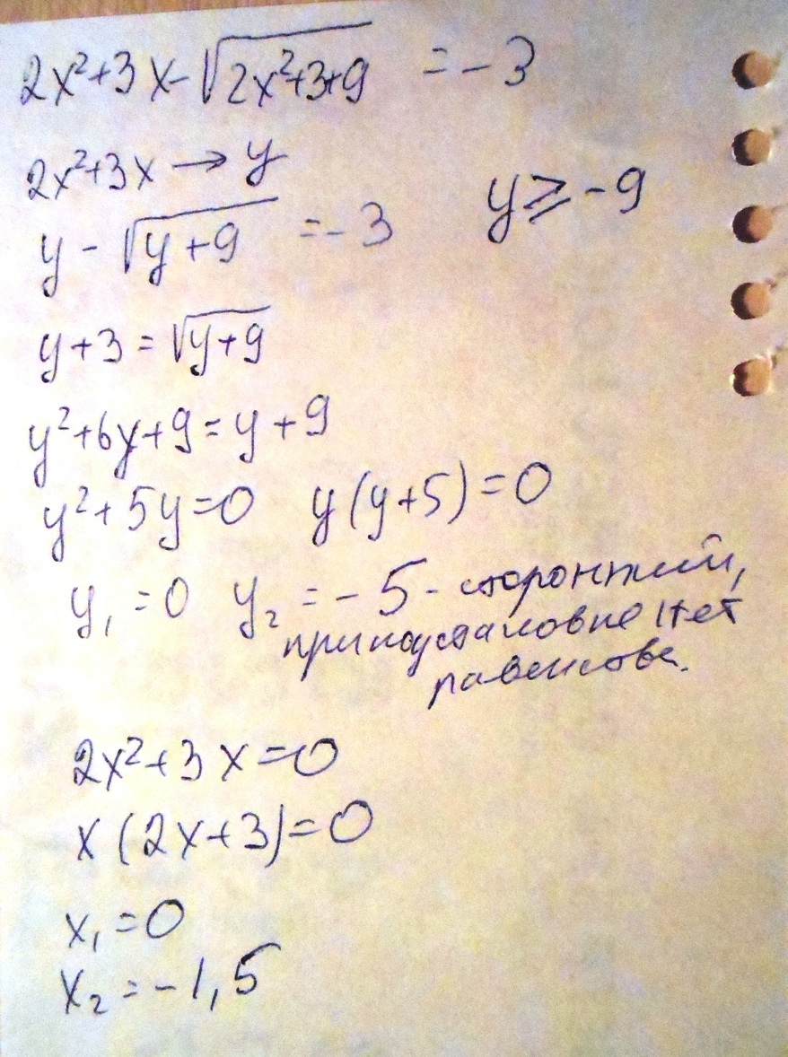 2x^2+3x-корень пятой степени из(2x^2+3x+9)=-3