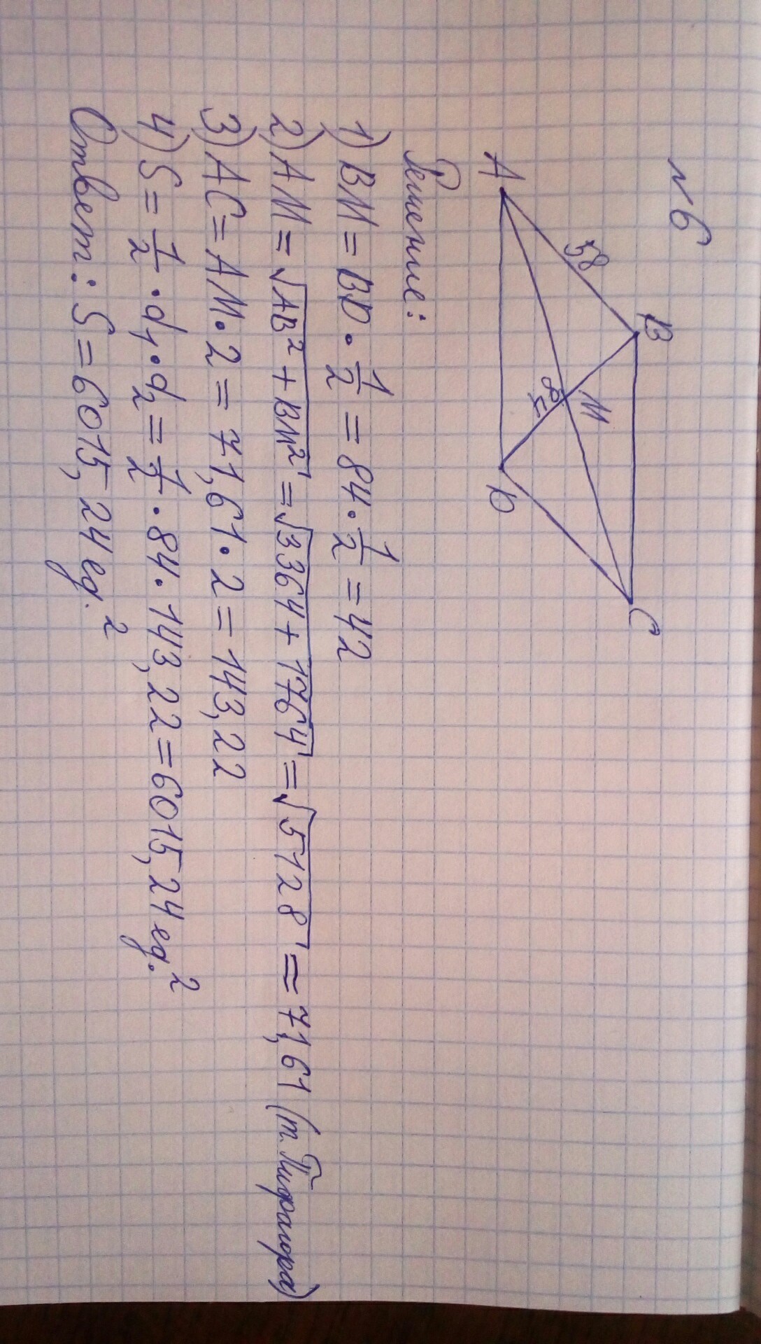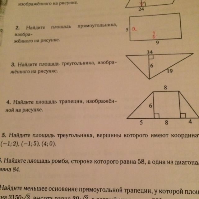 номер 3) S=1/2*b*h=1/2*34*6=102 ед.^2