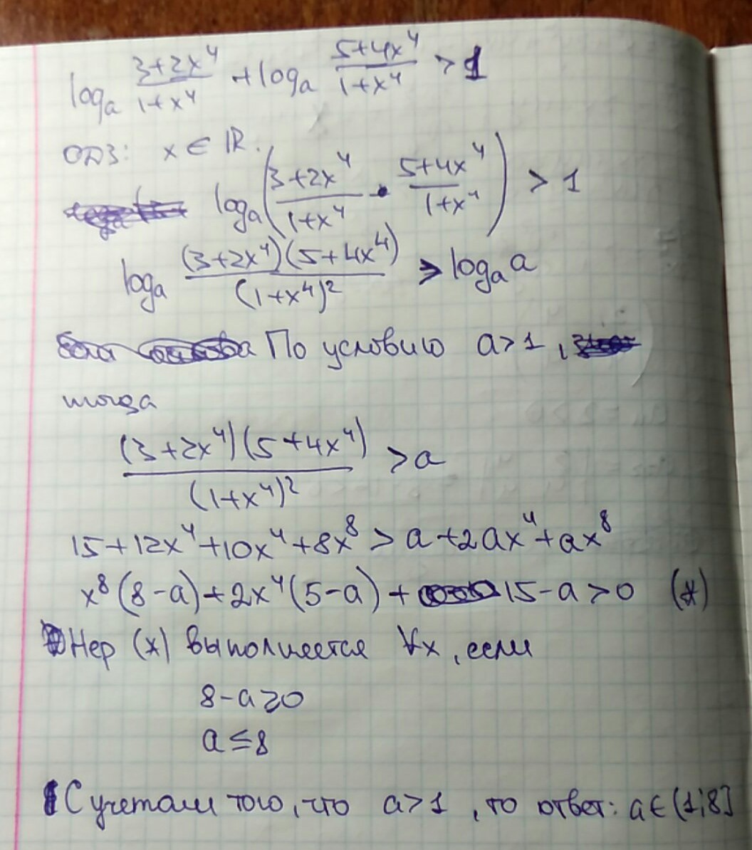 Помогите, пожалуйста, решить задачу с ПАРАМЕТРОМ. Мне бы хотя бы метод. Представил сумму log как произведение, потом попробовал пременить формулу рационализации, но график построить не могу. Как это можно решить?