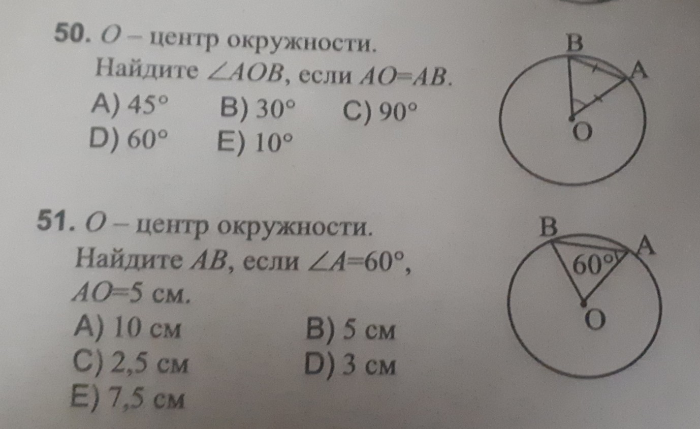 OA=OB, т.к. это радиусы окружности и значит треугольник АОВ равнобедренный, ∠В = ∠А = 60° как углы при основании равнобедренного треугольника. угол при вершине