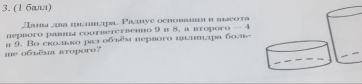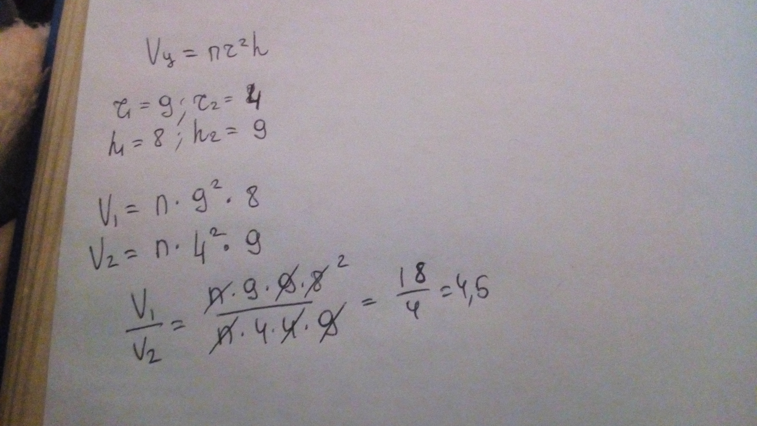 Решение на фото. Пишем формулу объёма цилиндра и все находим.