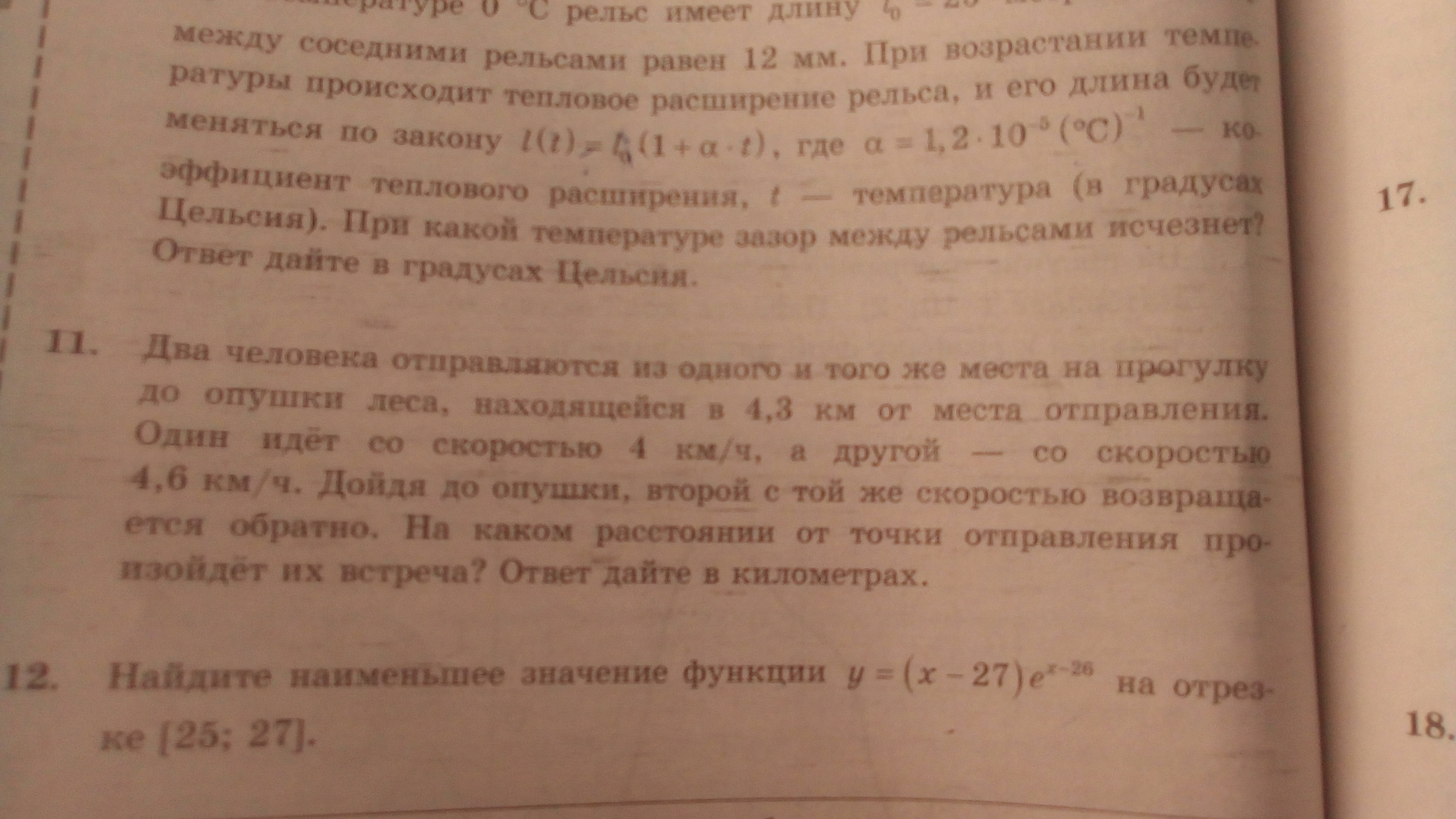 11. Если первый прошел S км до встречи, то второй прошел (4.3 + (4.3 - S)) = 8.6 - S км. Время движения у обоих одинаковое: