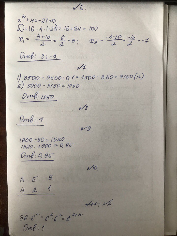 6. Это квадратное уравнение. Для нахождения корней воспользуемся формулой дискриминанта (b²-4ac). Находим корни и записываем ответ.