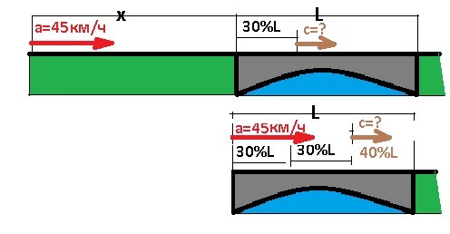 2)S = L - 2*0,3*L = 0,4*L - остаток пути до конца моста.