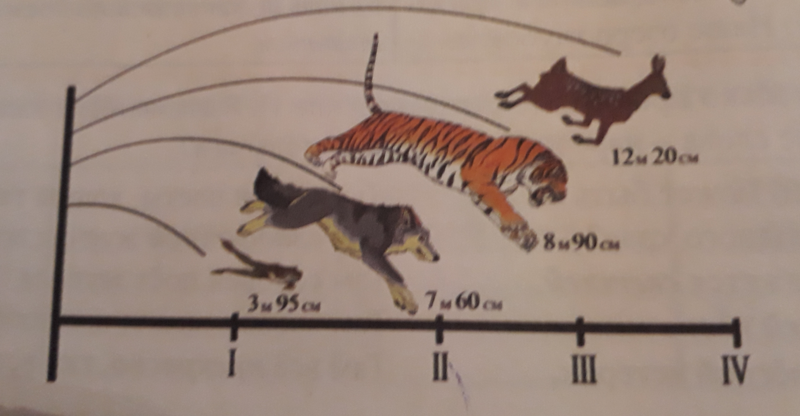 Природа наделила зверей многими возможностями. Одни быстрее бегут, другие проворнее реагируют на опасность, третьи сильнее бьют врага. Многие звери могут прыгнуть дальше других. Лидер в прыжках - лань, она выигрывает у тигра более трех метров. Волк, уступая тигру чуть больше метра, обходит лягушку почти на четыре метра.