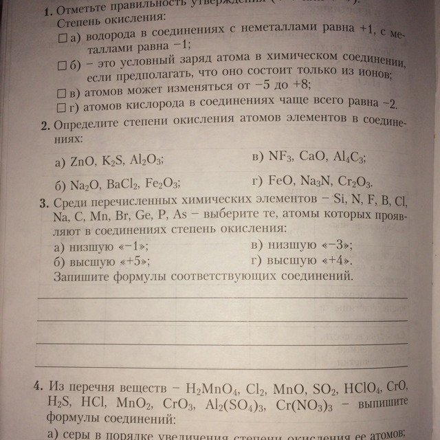 +4: Si, Ge, C (SiO2, SiCl4, GeH4, GeO2, GeBr4, CH4, Al4C3)