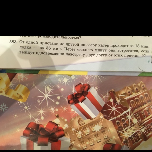 1/18 + 1/36 = 3/36 = 1/12 (скорость сближения катера и лодки)