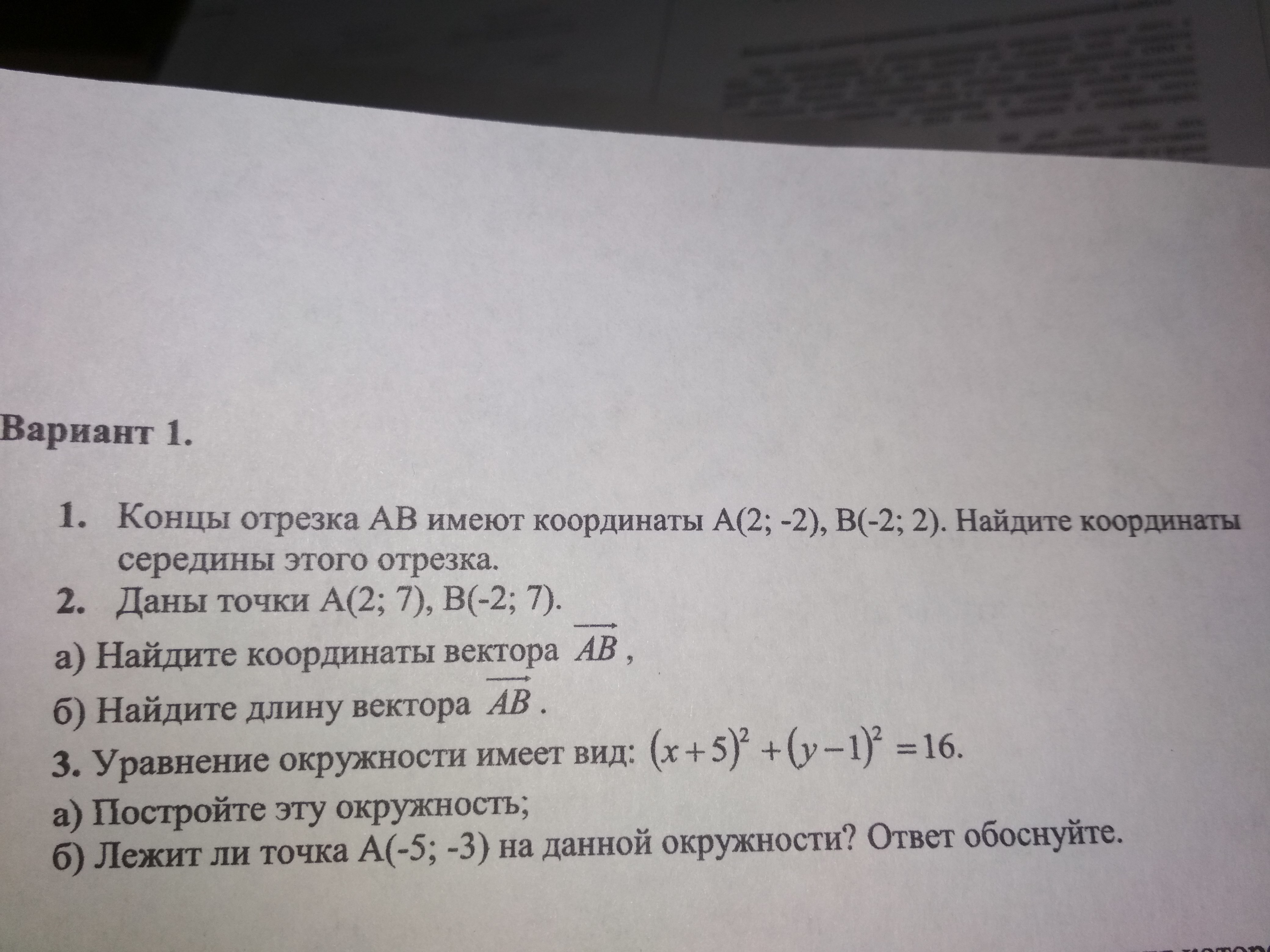 O = 1/2*(A+B) = 1/2(2-2;-2+2) = 1/2*(0;0) = (0;0)