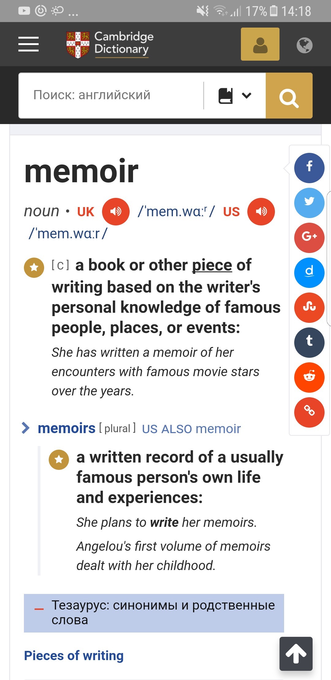 На первой картинке на второй линии есть слово MEMOIRS, а на второй картинке значения этого слово, ну там два варианта слова MEMOIRS, так как вы думаете, первый вариант или второй?