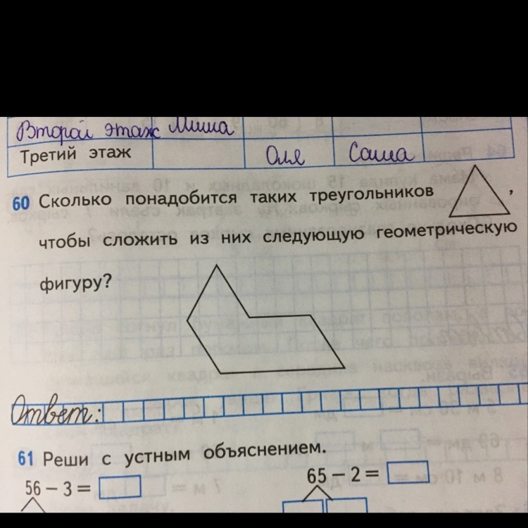 Сколько понадобится таких треугольников, чтобы сложить из них следующую геометрическую фигуру?