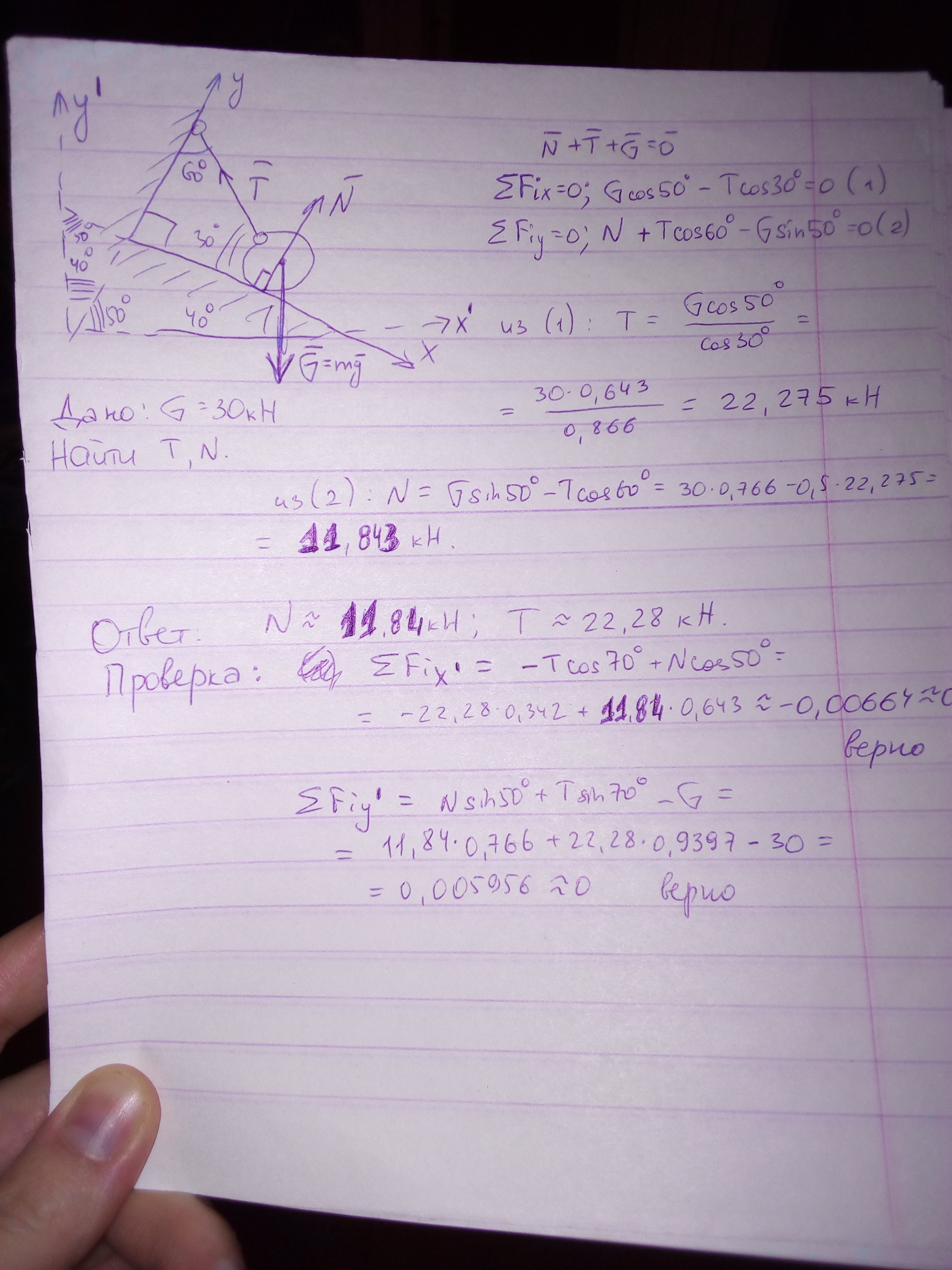 Т-сила натяжения, N - нормальная реакция опоры. Решение на фото.