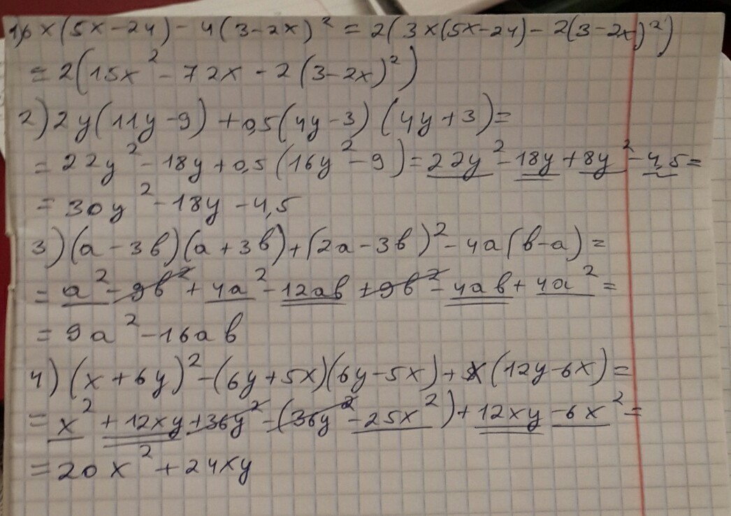 2) 2y(11y-9)+0,5(4y-3)(4y+3);
