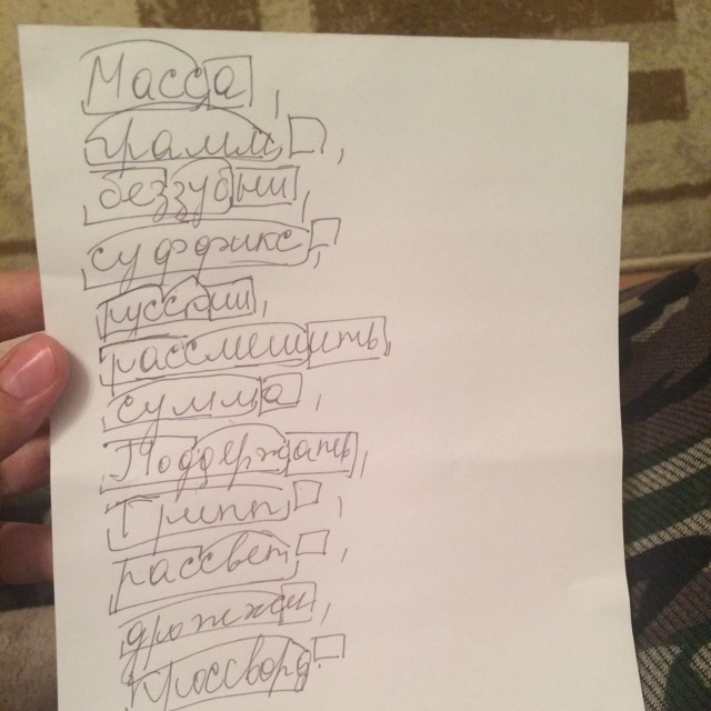 спешите слова.Разберите по составу.масса грамм беззубый суффикс русский рассмешить сумма поддержать грипп рассвет дрожжи кроссворд. в какой части слова находится удвоенные согласные