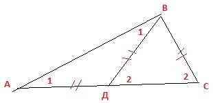 ∠ВДС=∠2=∠1+∠1- по свойству внешнего угла треугольника,