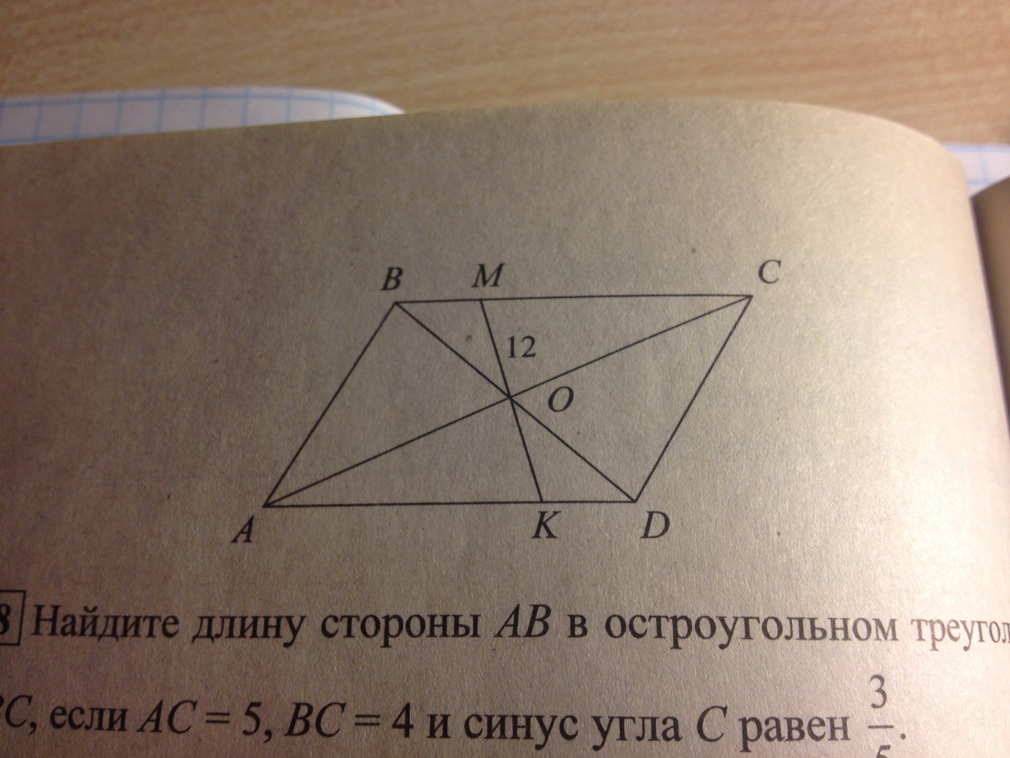 3) ABCD- ПАРАЛЛЕЛОГРАММ. ИСПОЛЬЗУЯ ДАННЫЕ, УКАЗАННЫЕ НА РИСУНКЕ, НАЙДИТЕ ДЛИНУ ОТРЕЗКА MK.