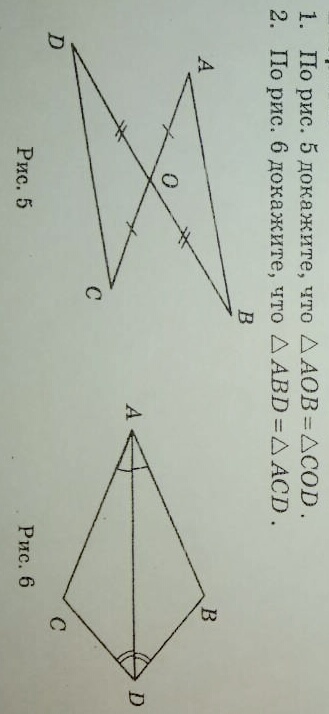 тр.AOB равен тр.DOC по двум равным сторонам и углу между ними