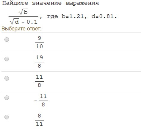 √1,21/(√0,81-0,1)=1,1/(0,9-0,1)=1,1/0,8=11/8