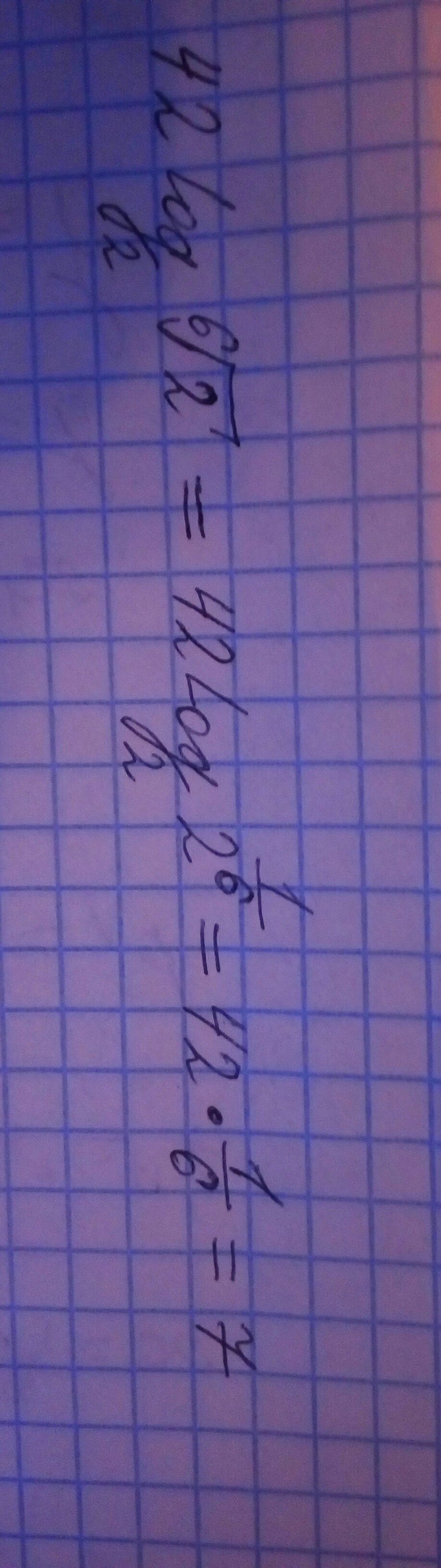 ![42log_2 sqrt[6]{2}=42log_22^ frac{1}{6}=log_22^ frac{42}{6}=log_22^7=7 42log_2 sqrt[6]{2}=42log_22^ frac{1}{6}=log_22^ frac{42}{6}=log_22^7=7](https://tex.z-dn.net/?f=42log_2+sqrt%5B6%5D%7B2%7D%3D42log_22%5E+frac%7B1%7D%7B6%7D%3Dlog_22%5E+frac%7B42%7D%7B6%7D%3Dlog_22%5E7%3D7+++)