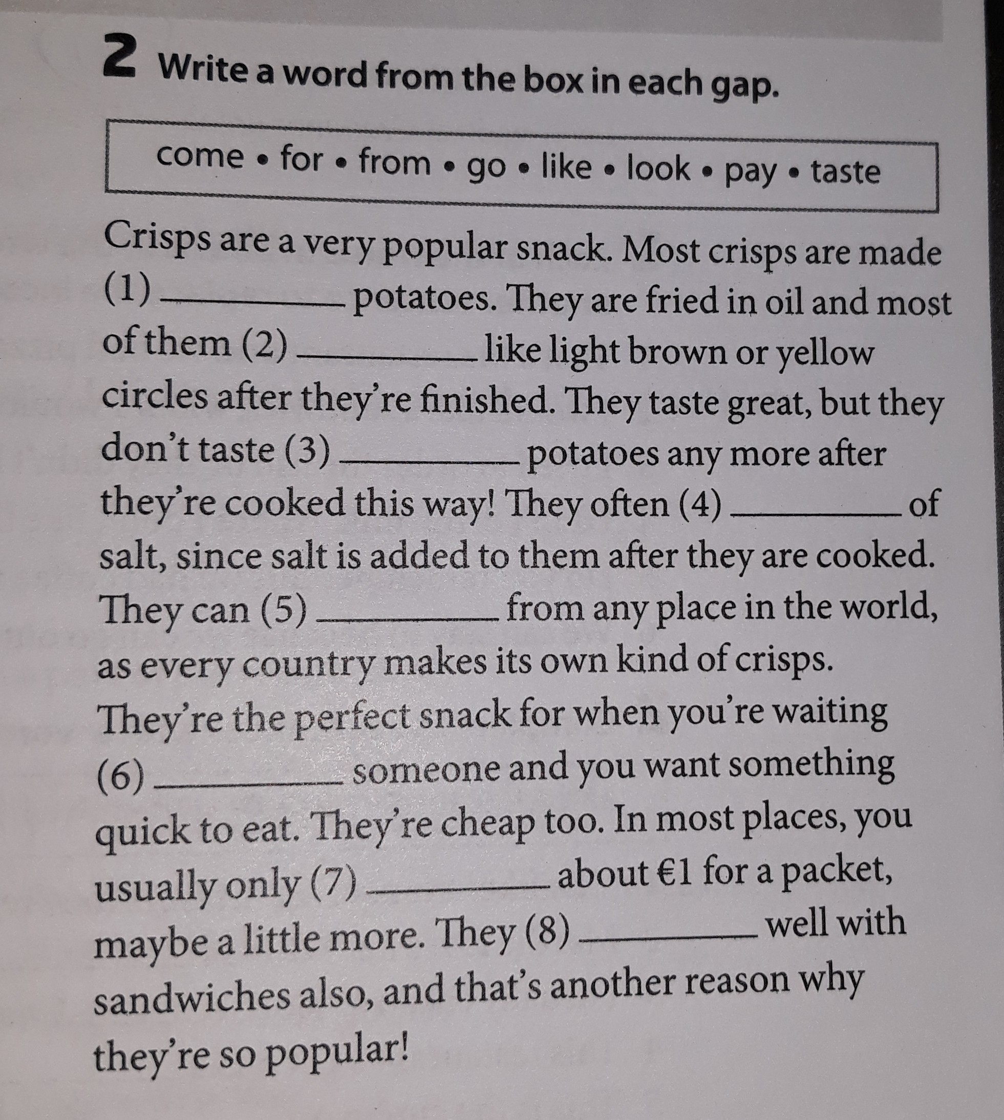 1 from 2 look 3 like 4 taste 5 come 6 for 7 pay 8 go