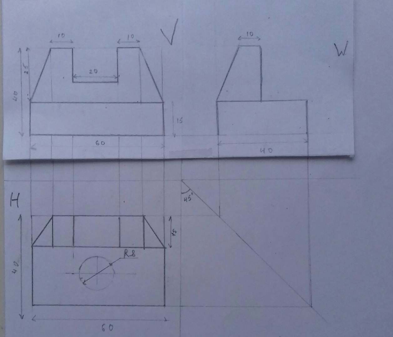 Вот ваш чертеж с проецированием и проекционными связями