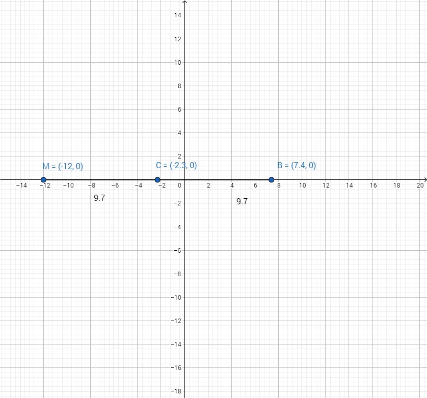 Следовательно координата точки M - слева от C на 9.7