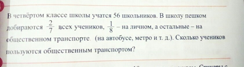 в четвертом классе школа учится в 56 школьникам в школу пешком добирает 2 седьмых всех учеников