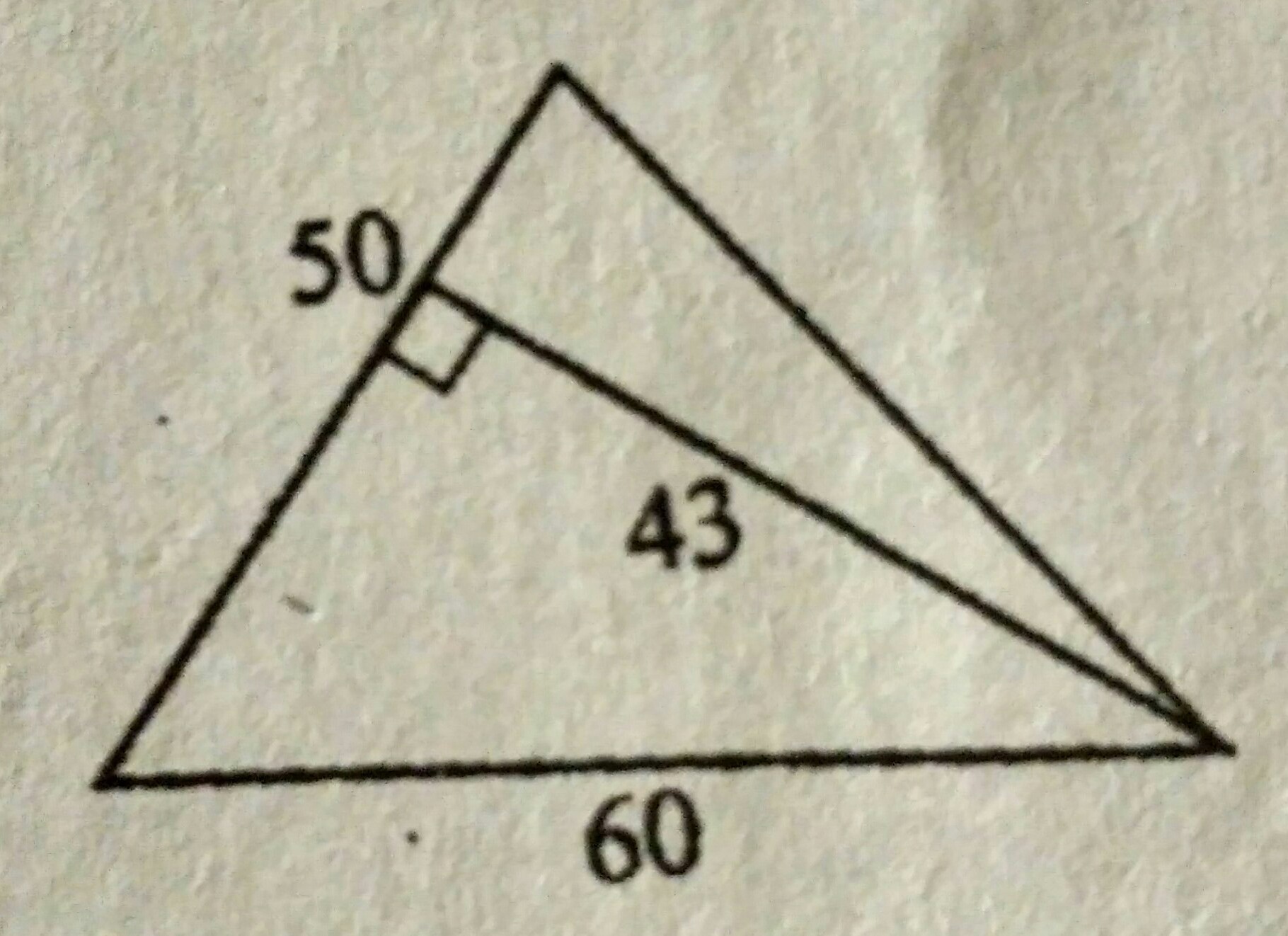 В треугольнике высота, проведенная к стороне = 50, равна 43.